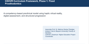 The Curriculum Development in Clinical Dentistry Treatment with Haptic-Based Virtual Reality Application (CDHVR) project is an Erasmus+ Higher Education project aimed at developing and implementing a comprehensive and effective curriculum for virtual reality-based dentistry education. This curriculum will enhance students’ learning experiences by combining haptic feedback technology with virtual reality simulations, allowing them to practice clinical dentistry treatments in a safe and controlled environment. The project team will identify the specific learning objectives and outcomes necessary for virtual reality-based dentistry education. The curriculum approaches for this education will be examined within the scope of the European Union, and based on the findings, workshops will be organized and evaluated. A new curriculum will be prepared, and infrastructure will be established to ensure that the facilities available at different universities can also be accessed in our country. This initiative is expected to make a significant contribution to the dissemination of virtual reality-based training in dental faculties in our country. The project outcomes consist of four deliverables.